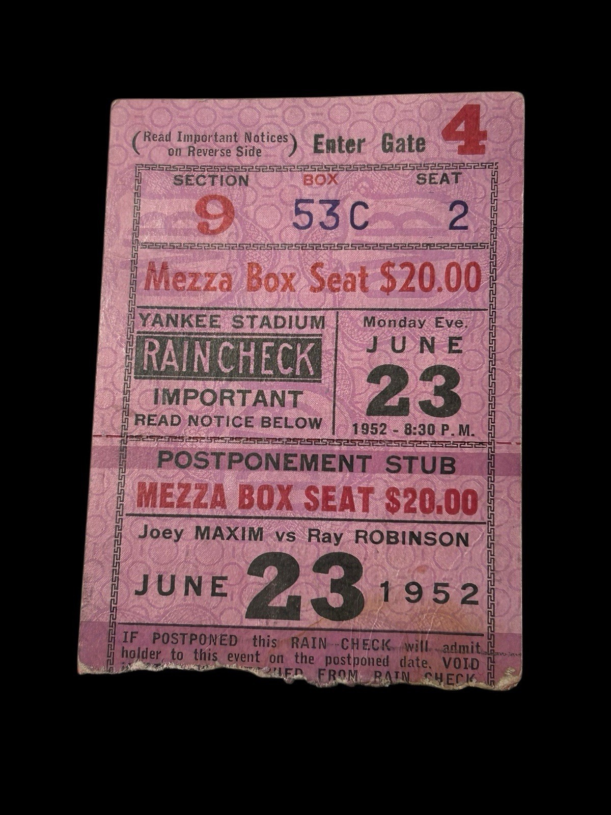 - NY Yankees Ticket Stub June 23rd 1952 (Mantle 2BB) (Berra 1BB) (Rizzuto 3 for 4)