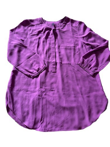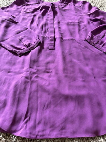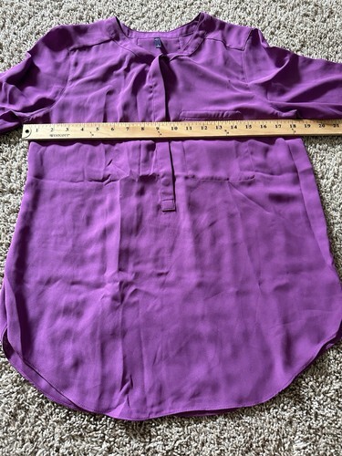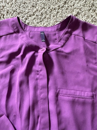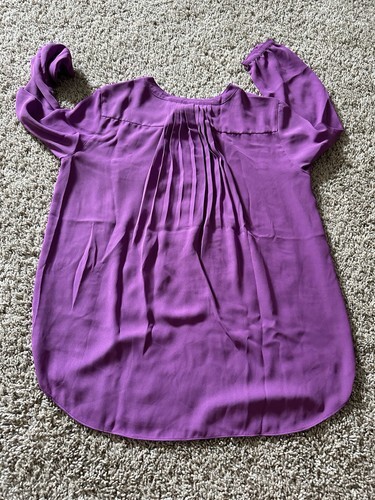 NYDJ Women Purple Pleated Back 3/4 Sleeve Sheer Top Blouse Size Small Career