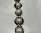 - Napier Wide Gold tone Link Bracelet w Faux Mother Of Pearl, Pearl & Rhinestones
