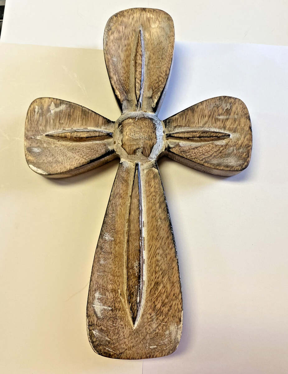 - Naples Ornate Carved Wood Whitewash Cross, New #AB-244