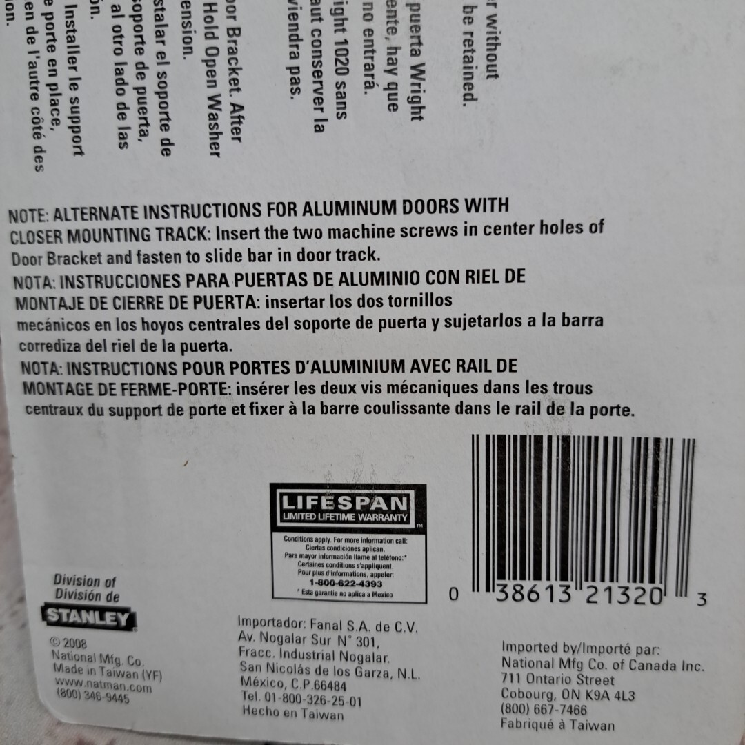 - Nation Hardware Screen/Storm Door Adjustable Closer, White, V1333