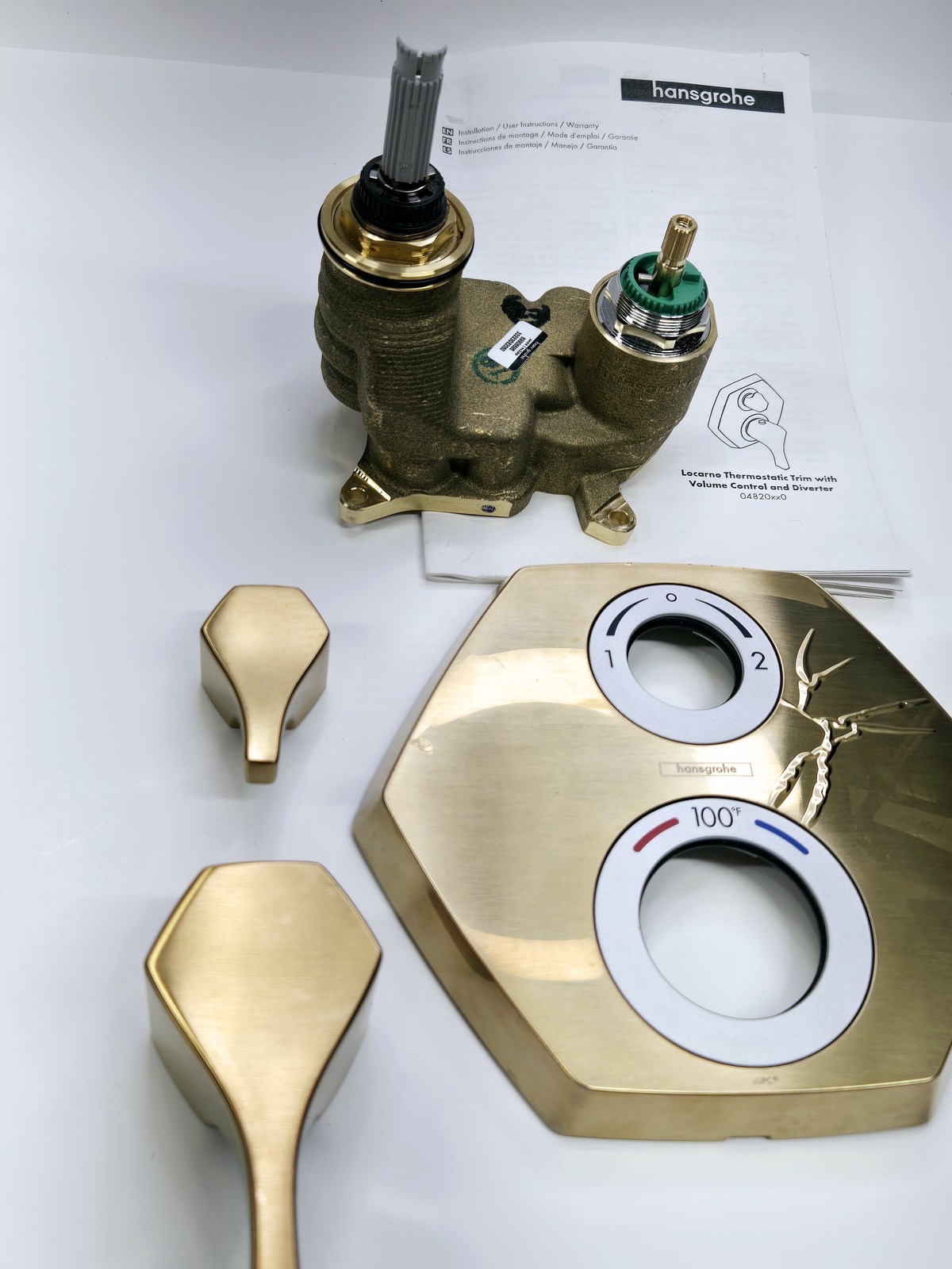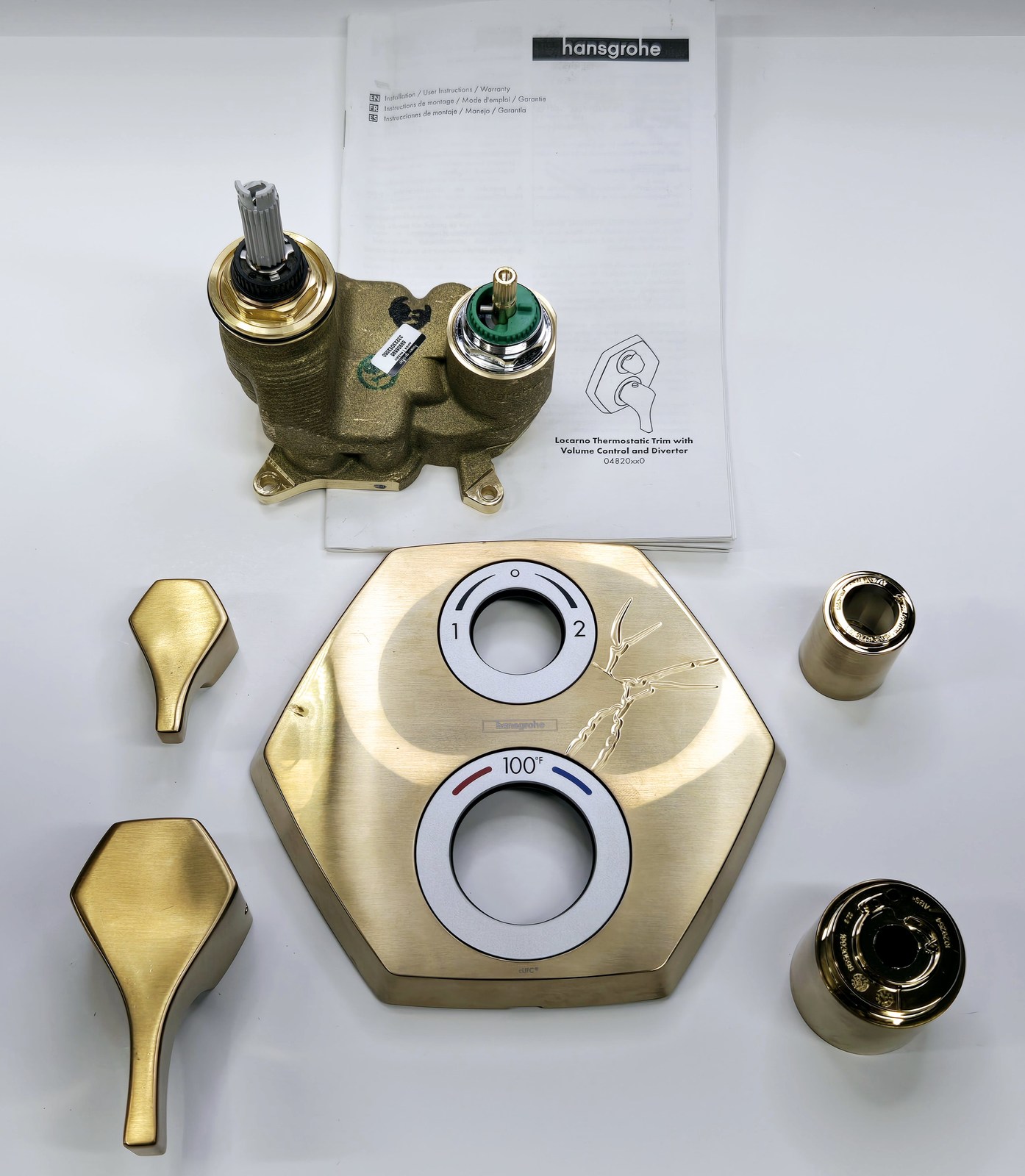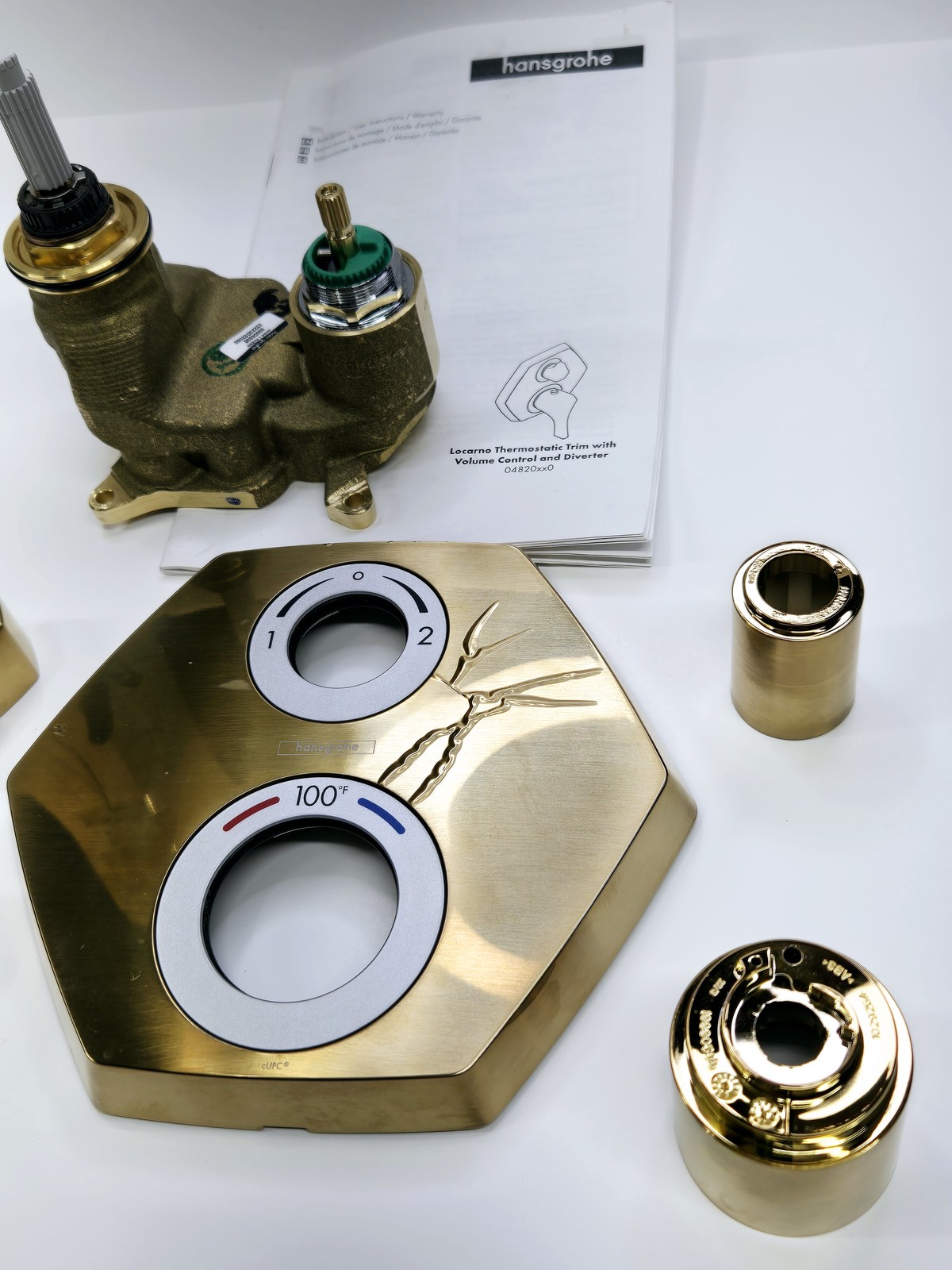 Inspired by the Art Deco movement and the 1920s, Locarno is the revival of iconic sophistication and elegance. Geometric octagonal form recalls the monumental period and will make a bold statement of authenticity and artistic appreciation in any living space. Available in five different finishes, Locarno will enable endless creativity, opening the door for uniquely glamorous interior spaces. The Locarno thermostatic trim with volume control and diverter perfectly coordinates with the entire Locarno bath and shower collection. The trim is optimized for low-flow shower options, giving you the same great performance while saving water. It also features temperature memory, allowing you to set your desired water temperature so it's perfect every time. It requires the National Brand iBox Universal Plus Rough (01850181) for installation in your bathroom. Transform your bathroom into a cleaner and more polished part of your home with the Locarno Collection by National Brand.