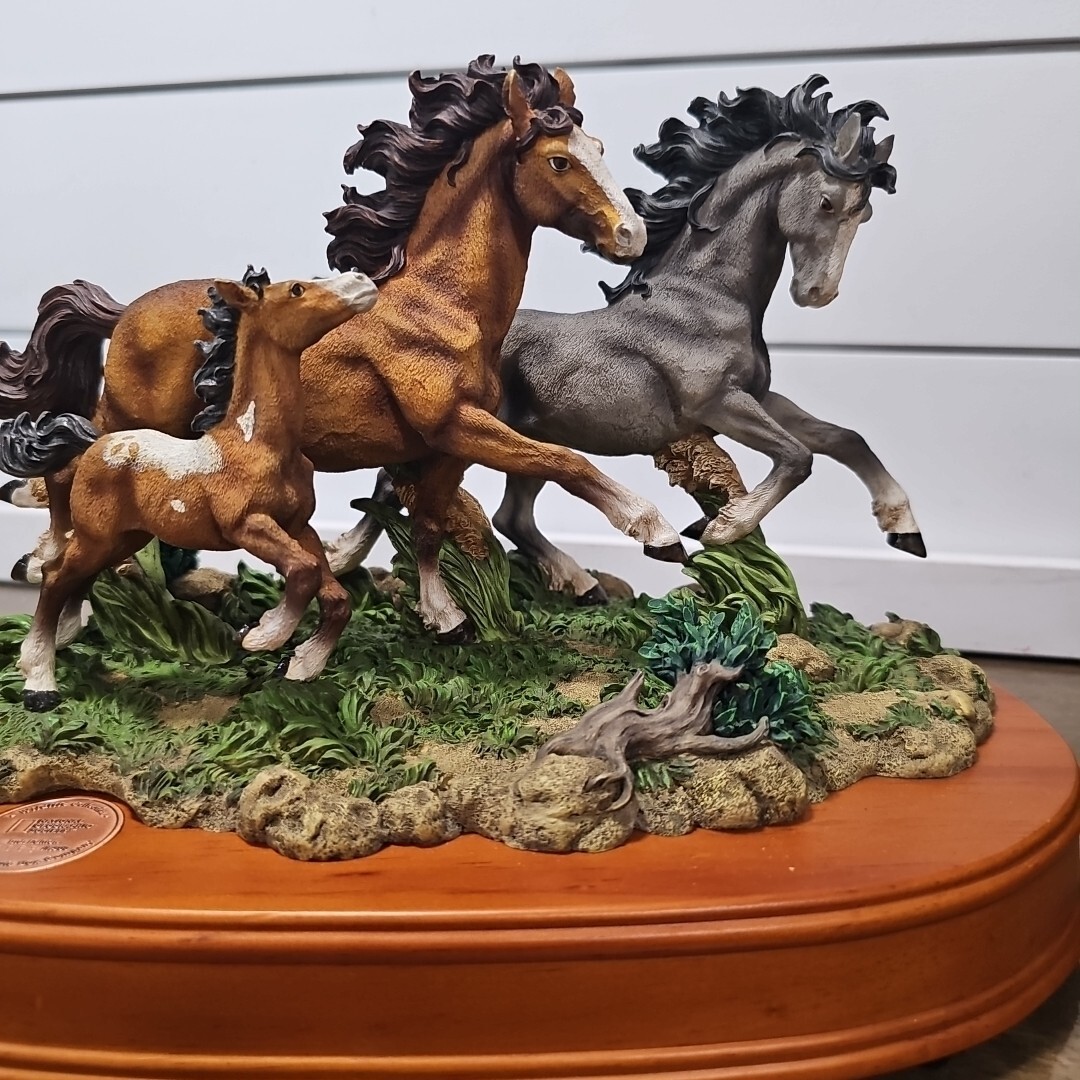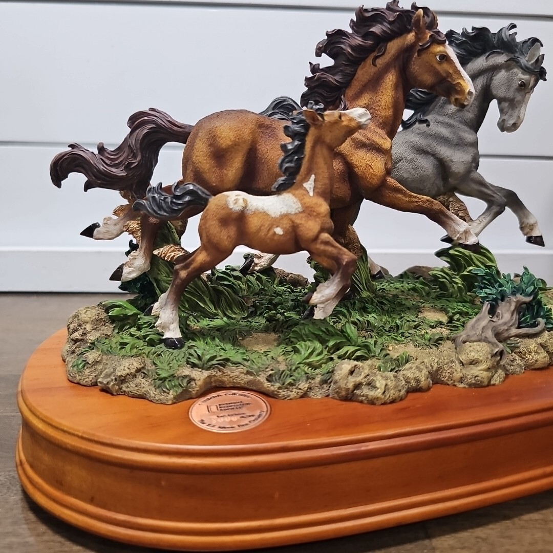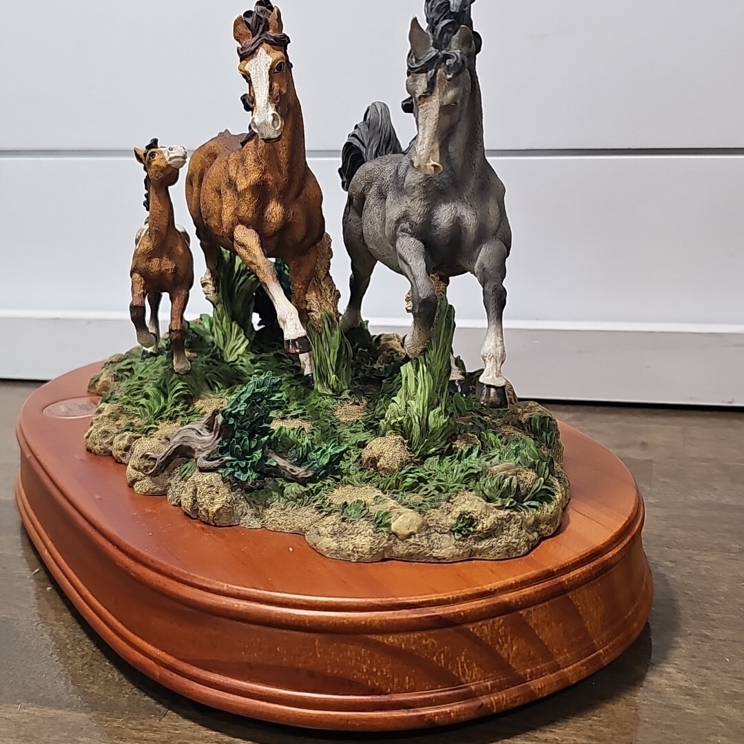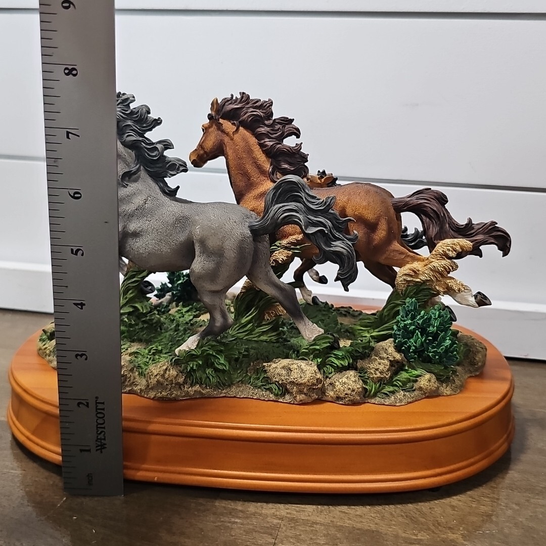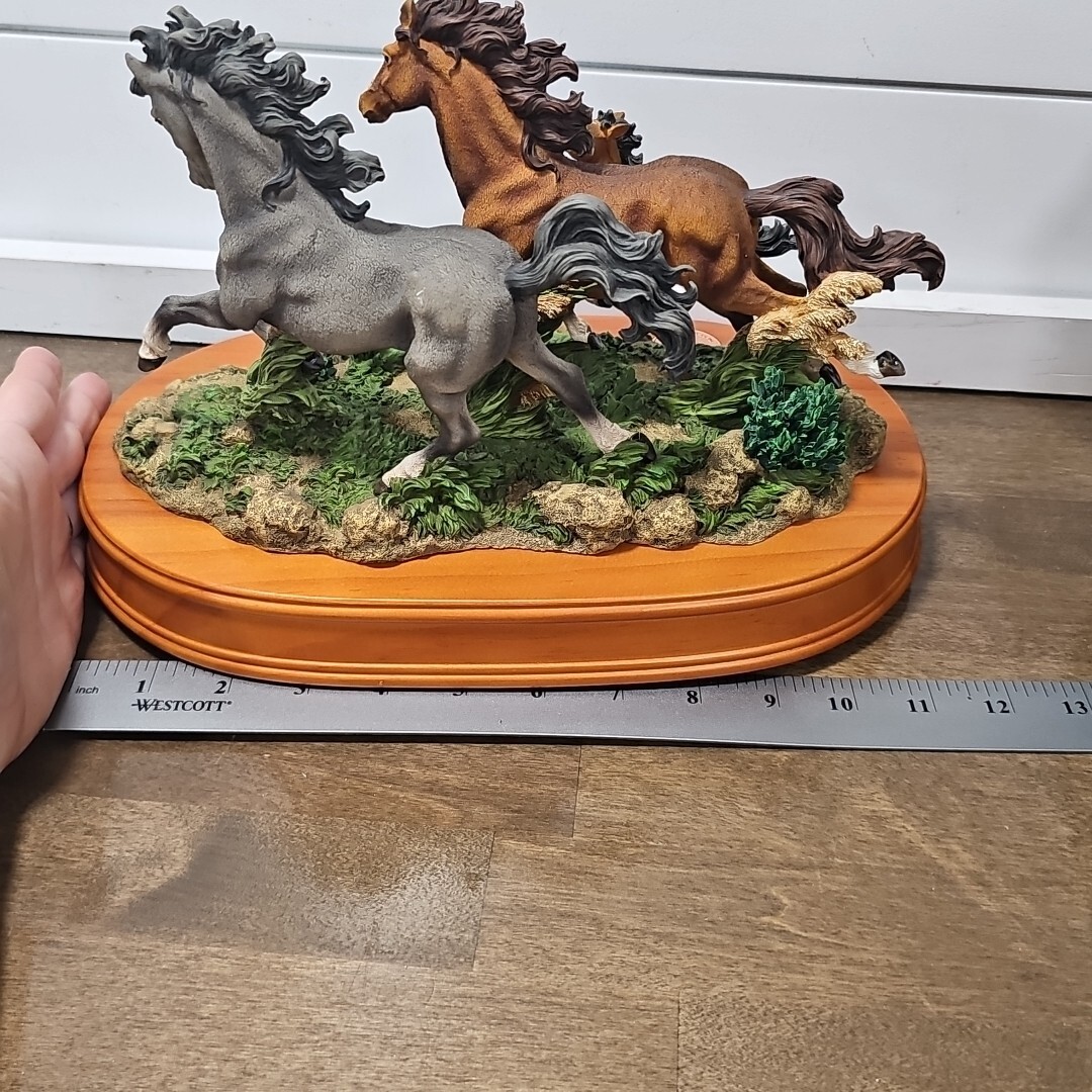 The National Geographic Society San Francisco Music Box Figurine Chariots of Fire is a decorative collectible made by the San Francisco Music Box brand. This intricately designed piece features a figurine of chariots of fire, perfect for collectors and enthusiasts of music boxes. Manufactured in the present time period, this non-handmade figurine is a unique and eye-catching addition to any collection.
