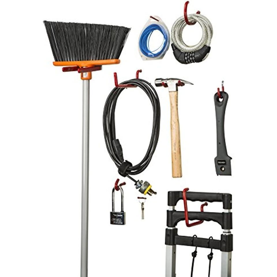 Assortment of screw-in, hammer-in and self-tap hooks. Used to hang a variety of tools and equipment. Non-mar coating protects tools and equipment. Red vinyl coating. Visual-pack.