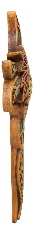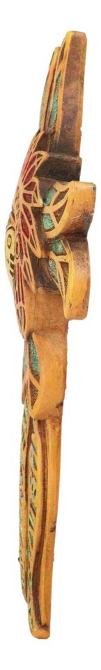 ? This Tribal Indian Owl Chief Wall Cross Sculpture measures approximately 10.75" tall, 6" wide and 1" deep each. It weighs about 14 ounces.