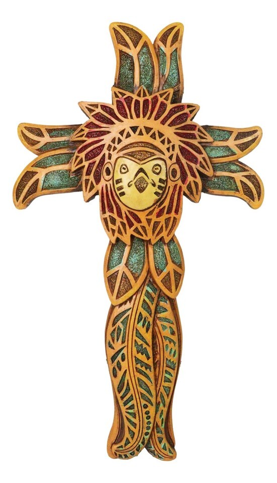 ? Honor nature and heritage with the Native American Owl Chief Wall Cross. This beautifully crafted piece features a wise owl adorned in a traditional tribal headdress, symbolizing wisdom, vision, and spiritual guidance. Set against a faux wooden cross with intricate floral accents, it blends cultural artistry with rustic charm. Perfect for Southwestern, Native-inspired, or nature-themed decor, this wall cross makes a meaningful addition to any home.