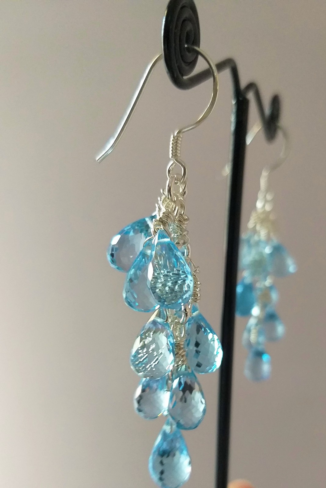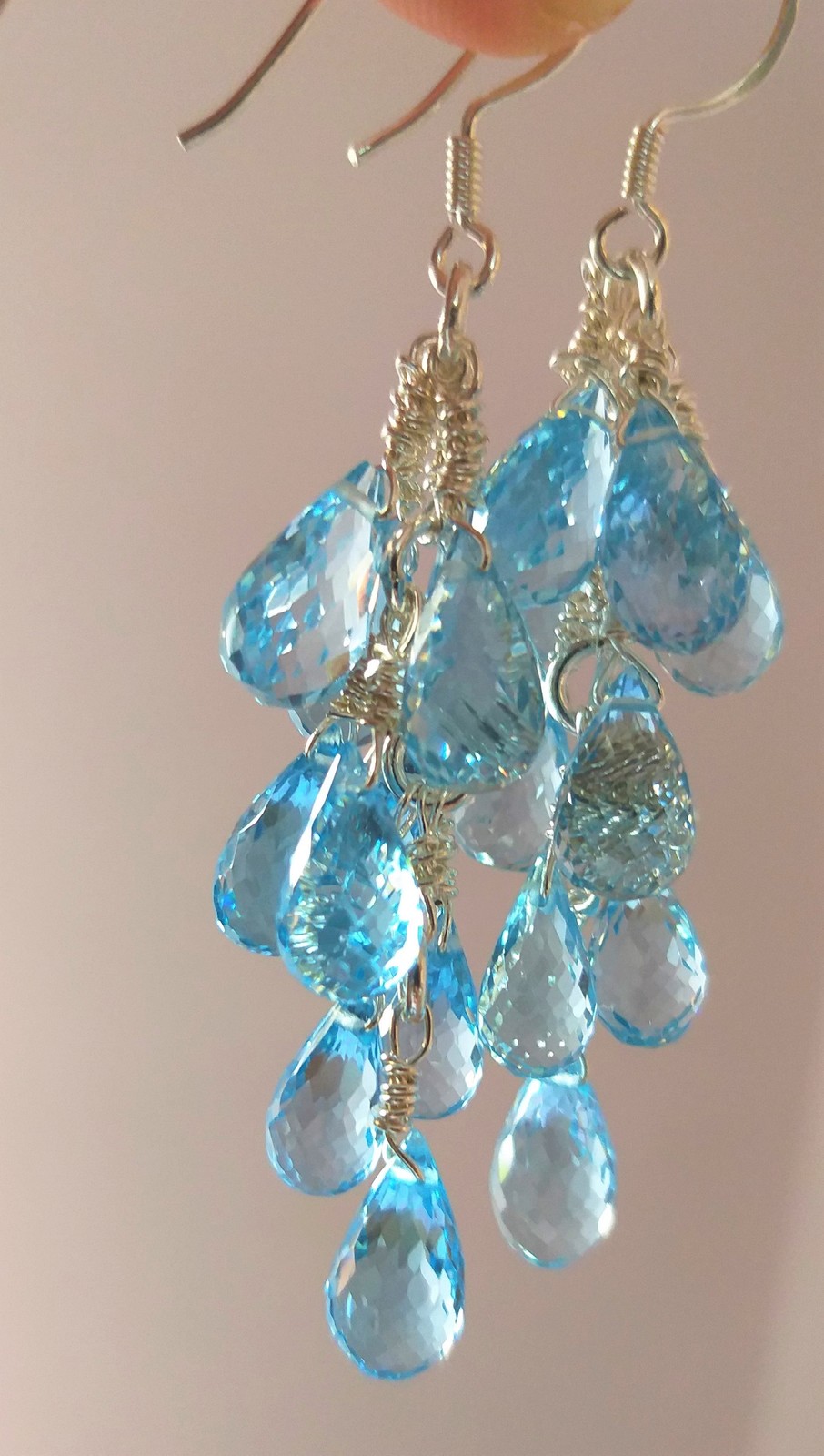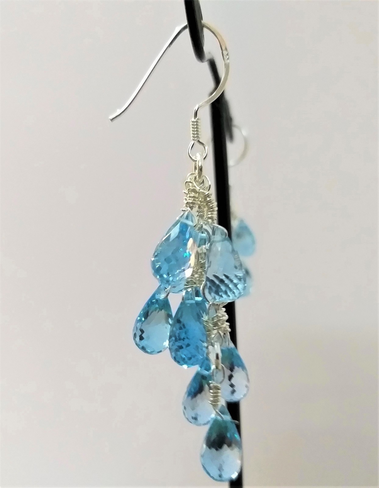 Total length of the earrings is 3 inches, Drop length is 2 inches and 10 Blue Topaz Drops are used in each earring.