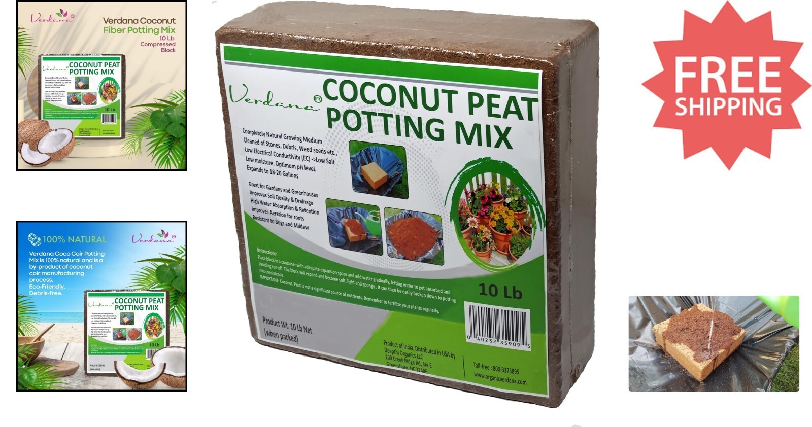 - Natural Coconut Coir Potting Mix - 10 lb Brick Expands 18 Gal - Soil Substitute