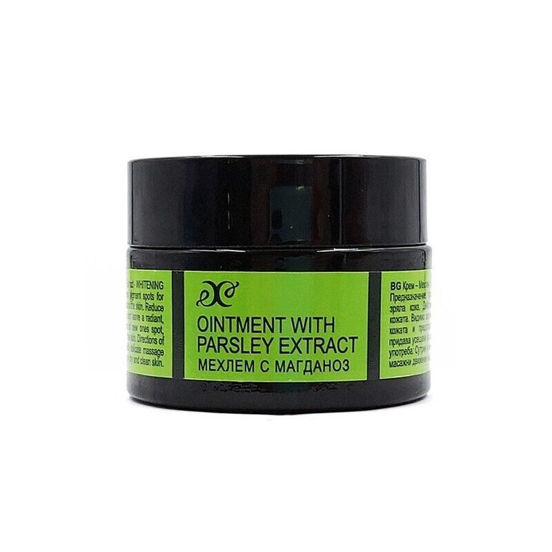 Cream - ointment with parsley is made entirely from 100% natural ingredients and is designed to lighten and smooth the skin. It has a beneficial effect on pigmente spots. Visibly removes pigment spots on the skin and prevents the appearance of new ones, giving a feeling of freshness and softness.