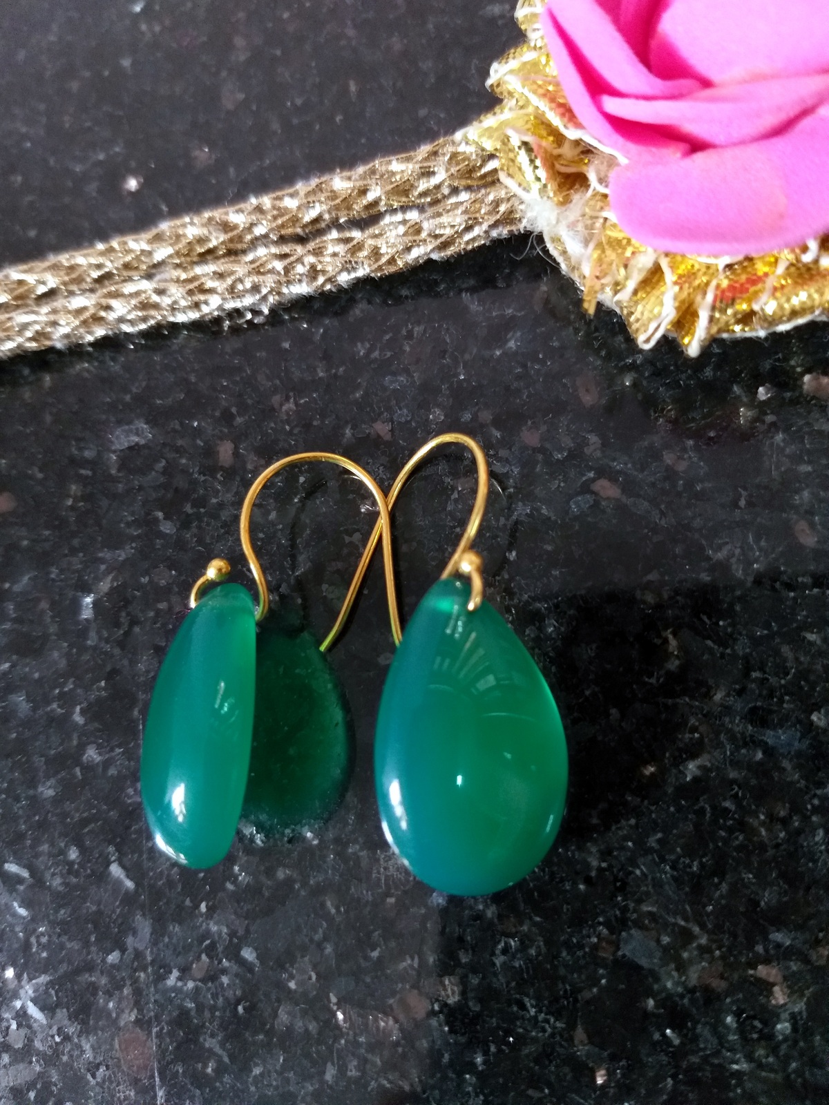 Gorgeous Green Pear shaped Onyx Cabochon Gemstone Earrings