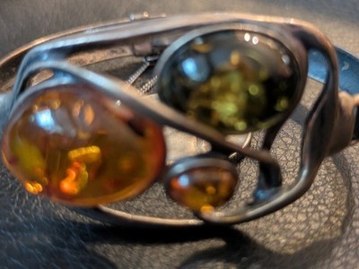 - Natural Honey and Green Amber Solid Sterling Silver 925 Bangle Bracelet