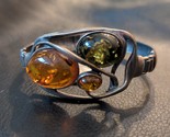 - Natural Honey and Green Amber Solid Sterling Silver 925 Bangle Bracelet