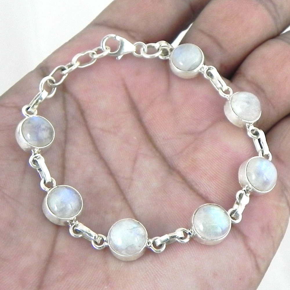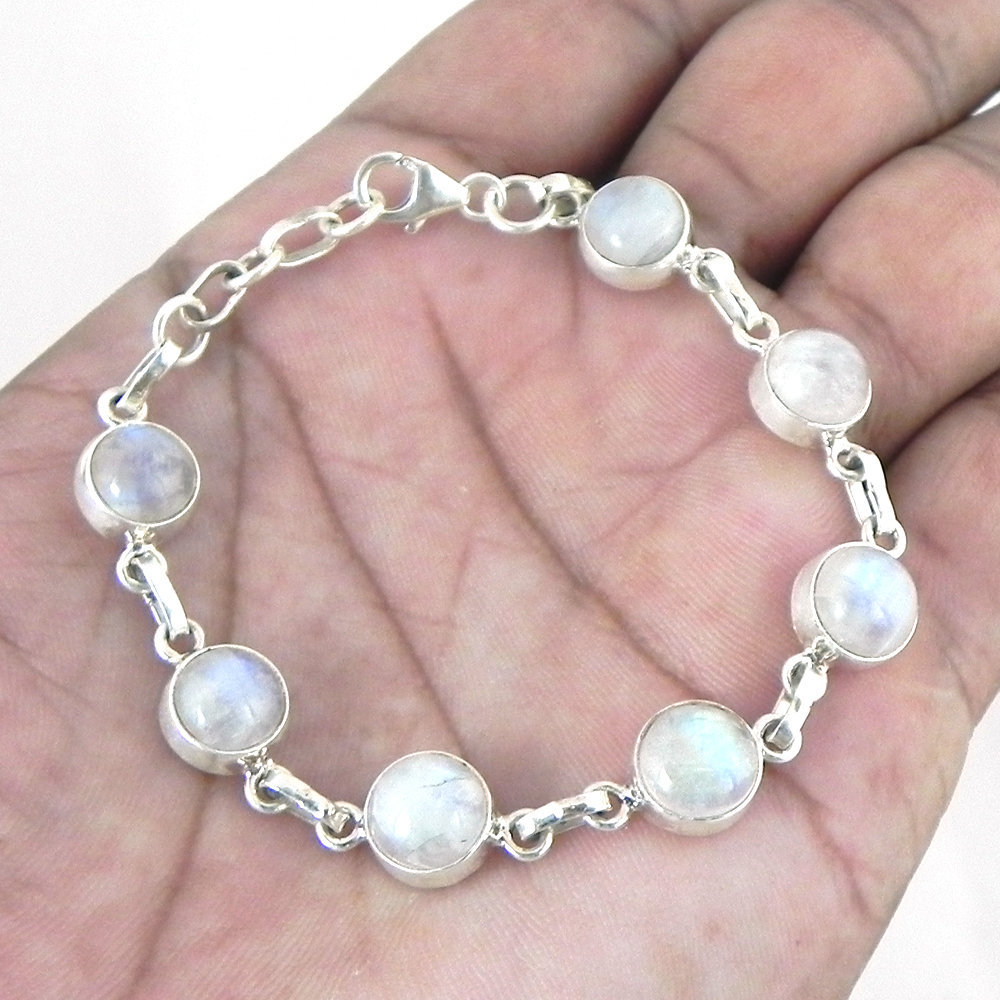 - Natural Rainbow Moonstone Bracelet-925 Sterling Silver Cuff Bracelet Women Gift