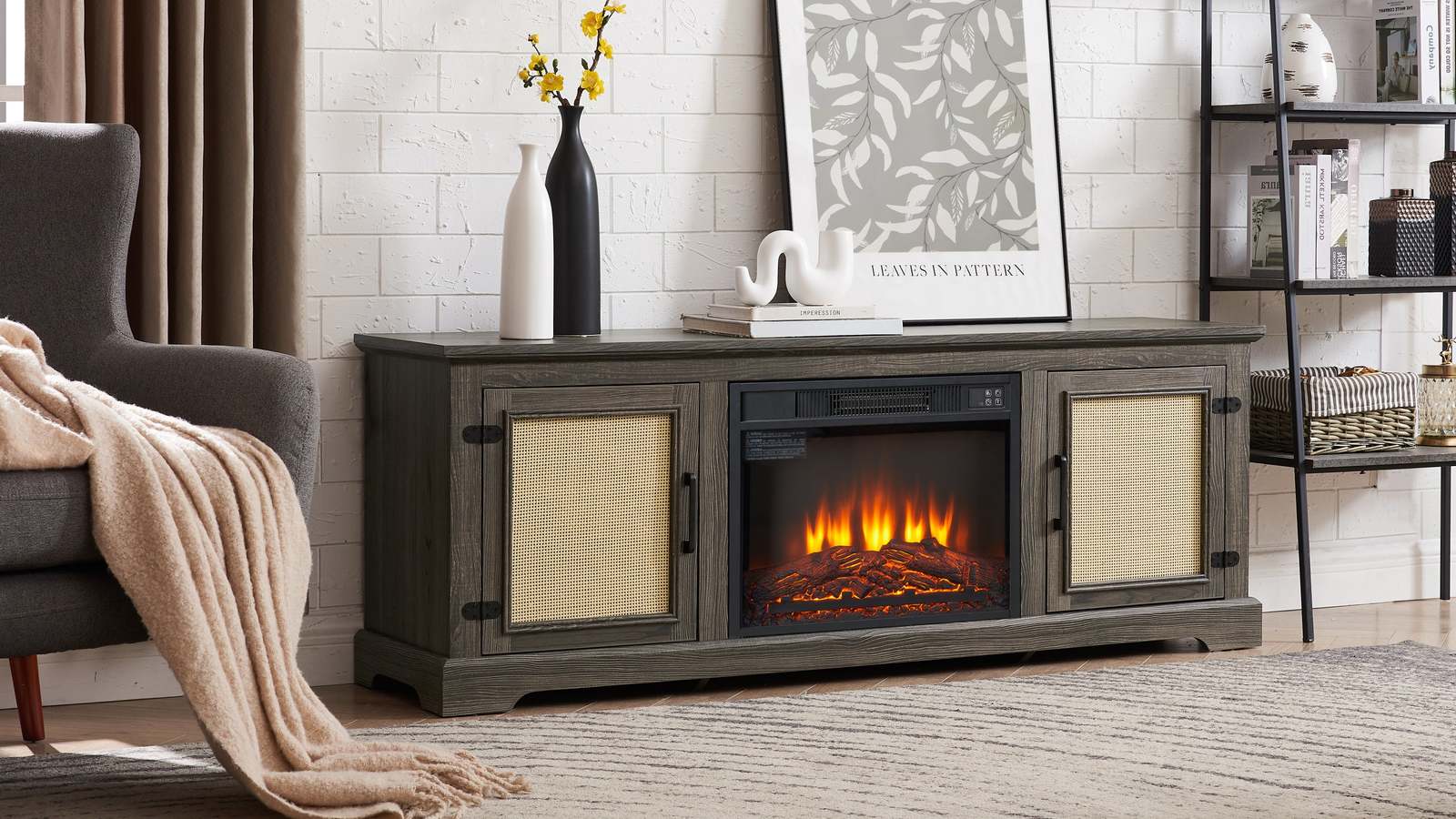 [Realistic Fireplace Charm, Just Push of a Button Away] Equipped with a remote, this fireplace adds elegant charm to your living space, with or without heat.
