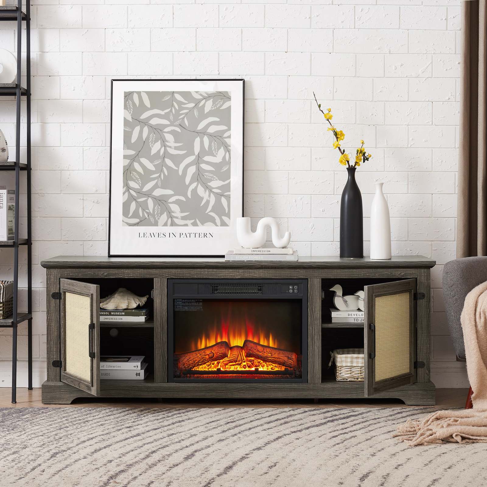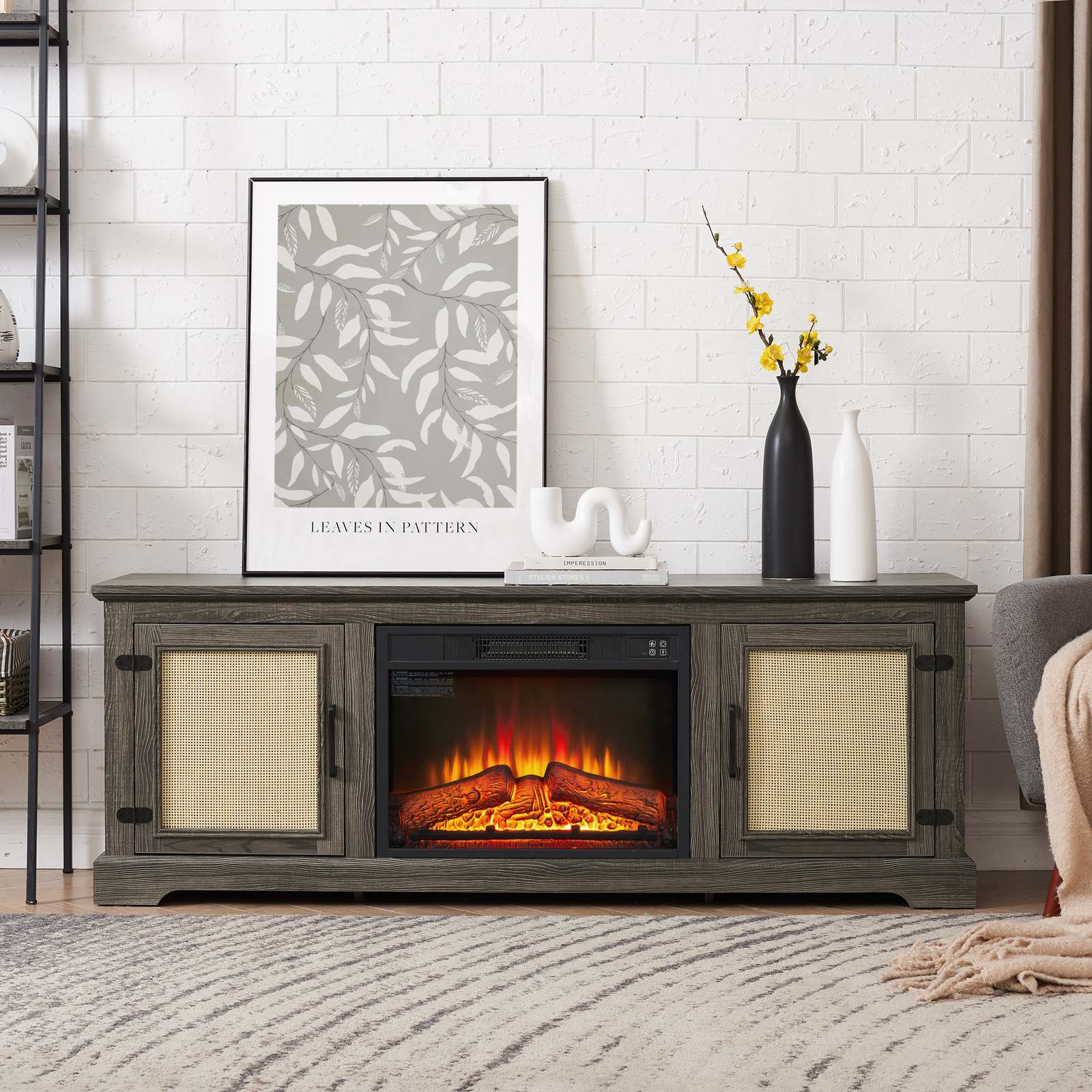 [Natural Rattan Decorating Surface] The TV stand's door surface is handcrafted from natural rattan, a two-tone blend of midcentury modern and boho that adds a cozy yet stylish touch to your space.