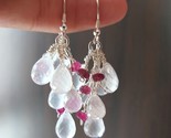 - Natural Rose Quartz Drops and Rubellite Beads Silver Earrings