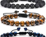 - Natural Stone Bracelets for Men - 8Mm Tiger Eye, Matte Agate, Lava Rock - Teen B