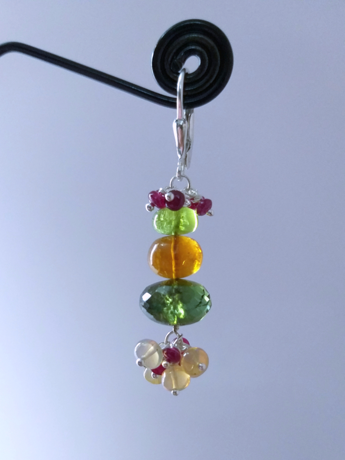 - Natural Tourmaline, Citrine, Peridot, Opal and Ruby Beads Earrings