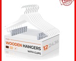 - Natural Wooden Hangers Set of 12 - Ergonomic Clips & 360 Degree Swivel Hooks