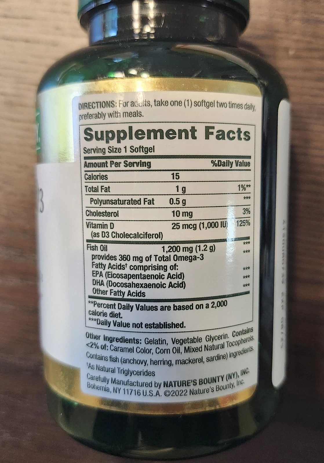 Natures Bounty Omega-3 Fish Oil 1200 mg 120 Rapid Release softgels EXP 03/2025.