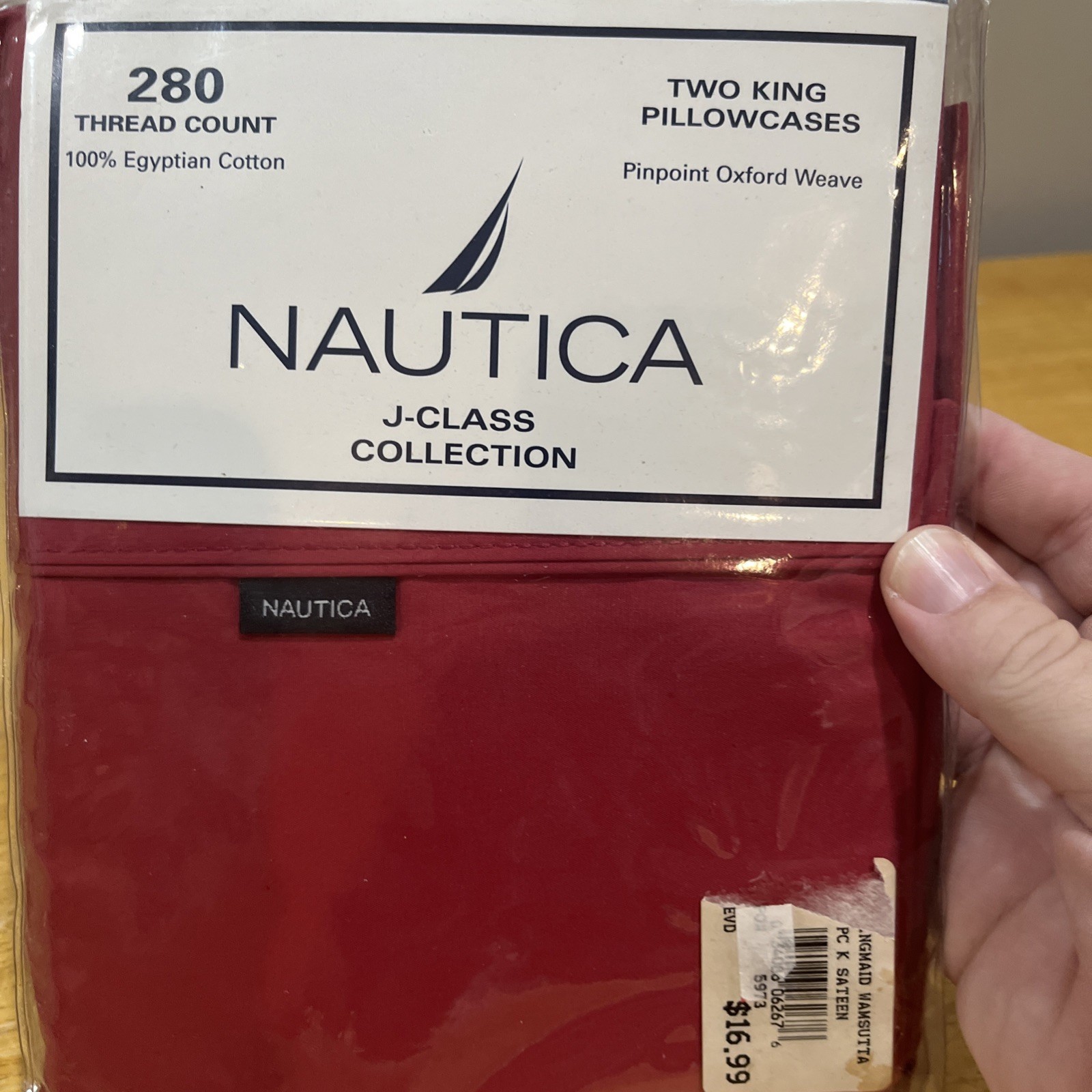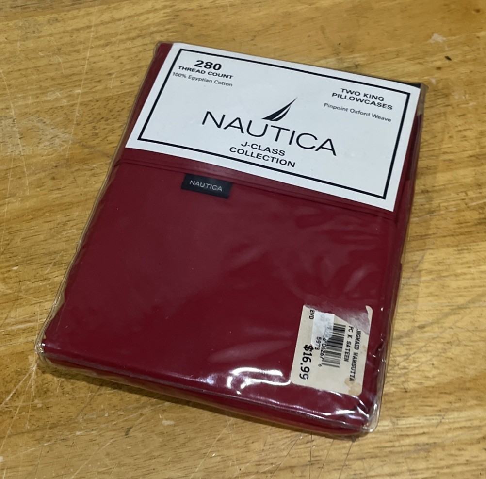 - Nautica Maroon Egyptian Cotton King Pillowcases J-Class Collection Red Oxford