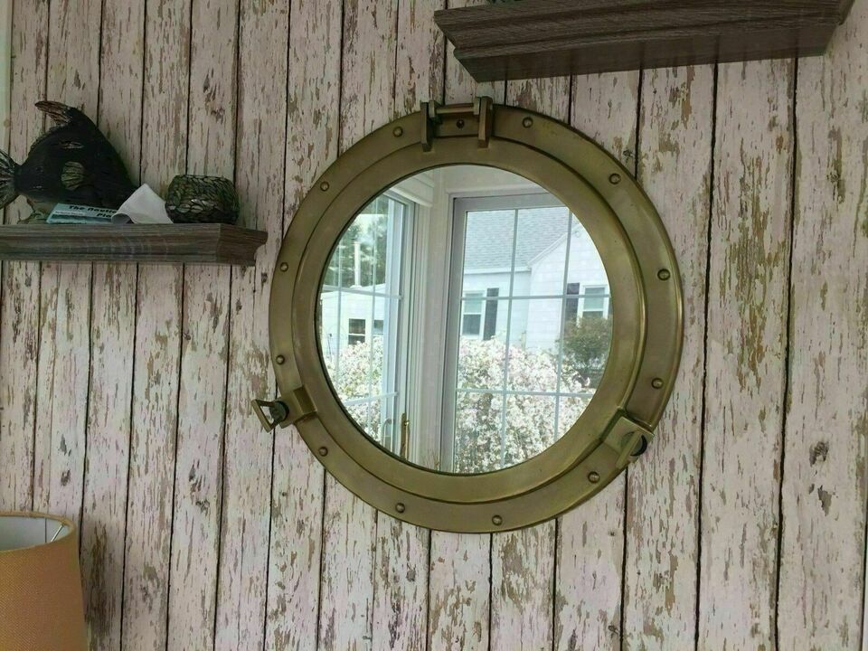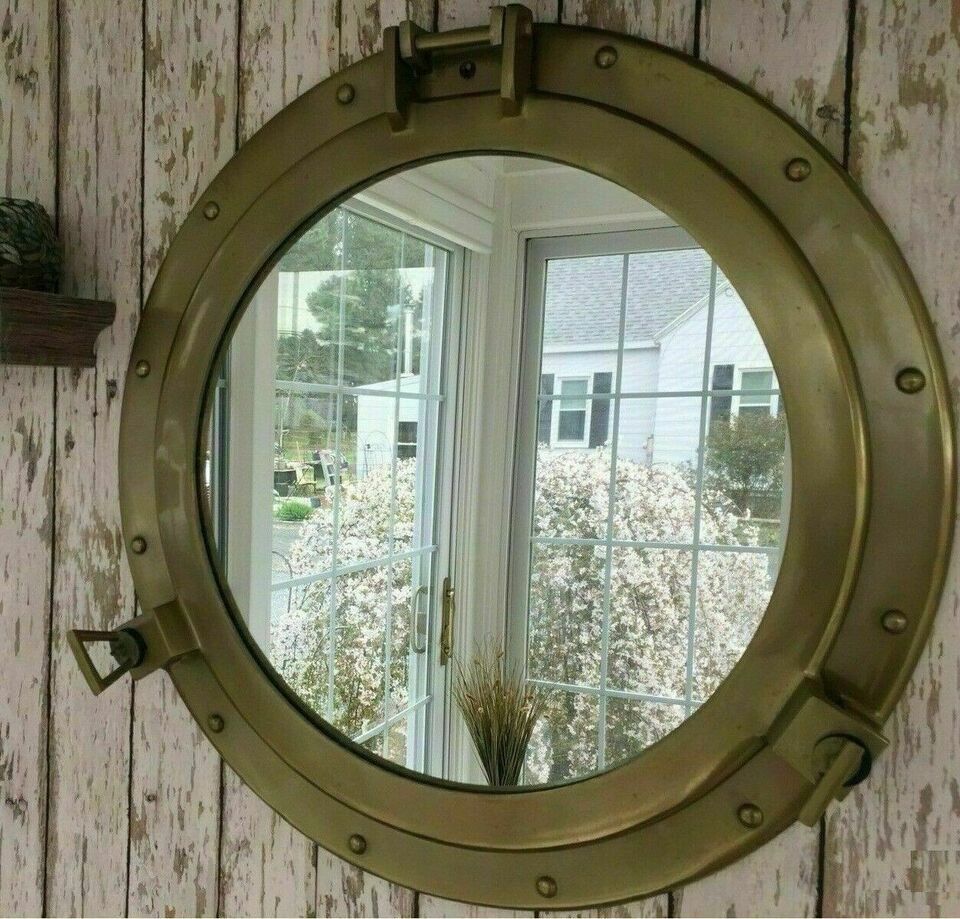 Antique Brass Finish ~ 20" Porthole Mirror ~ Large Nautical Cabin Wall Decor
