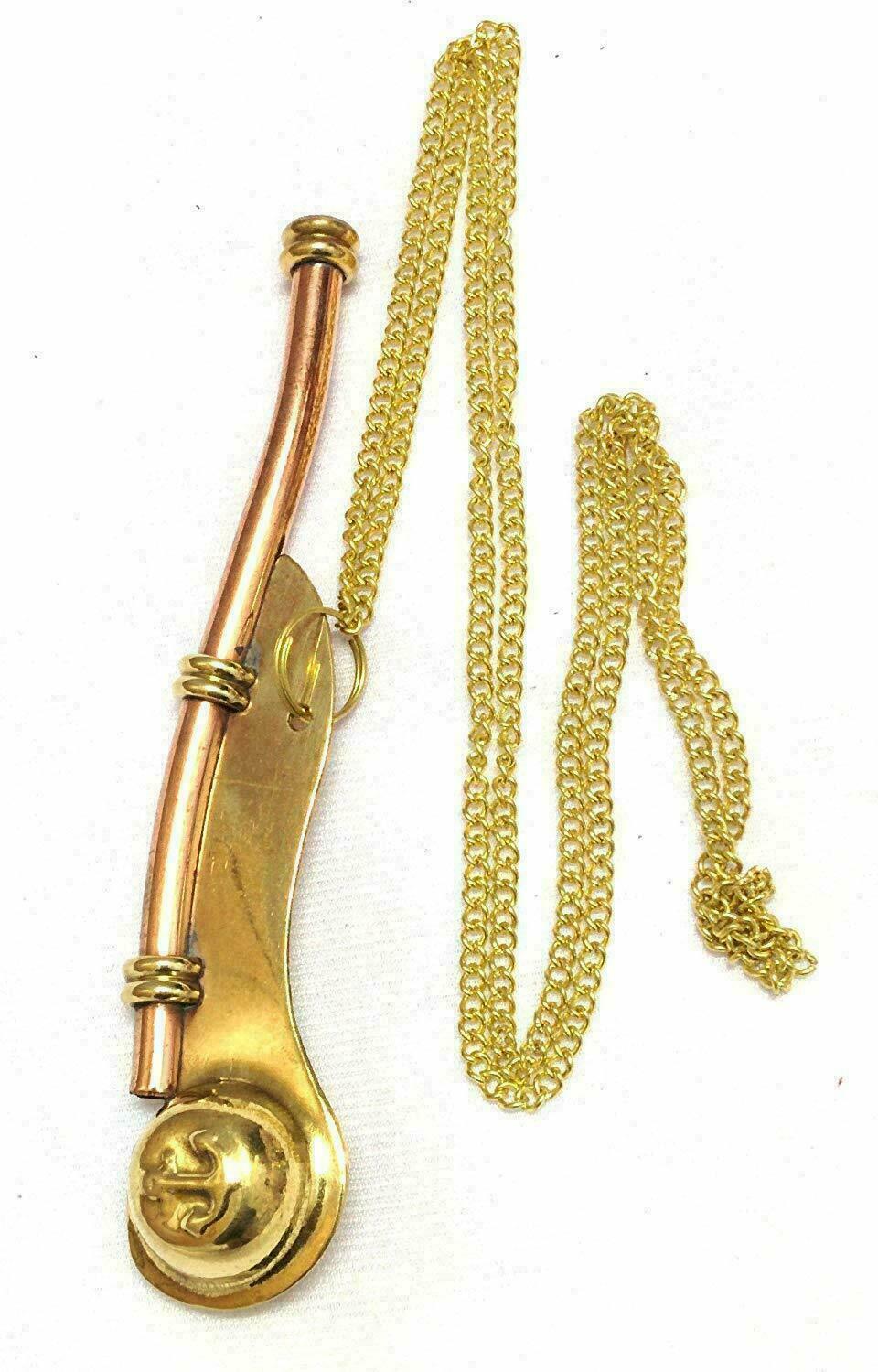 - Nautical Collectible Nautical Brass Whistle with Chain Polished Replica