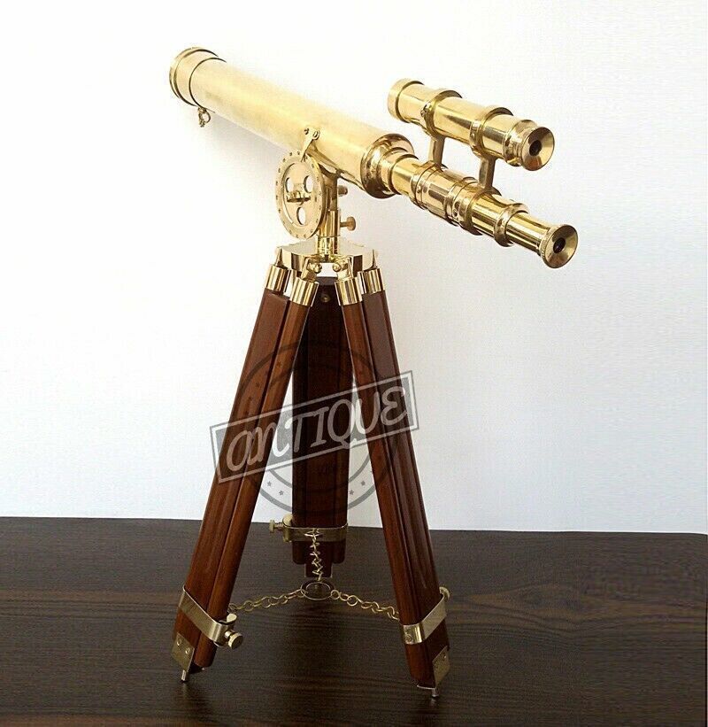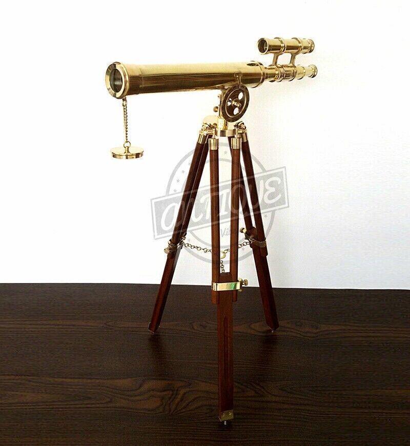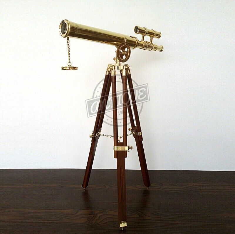 - Nautical Floor Wooden Stand With Telescope Brass Master Harbor Marine Home Decor