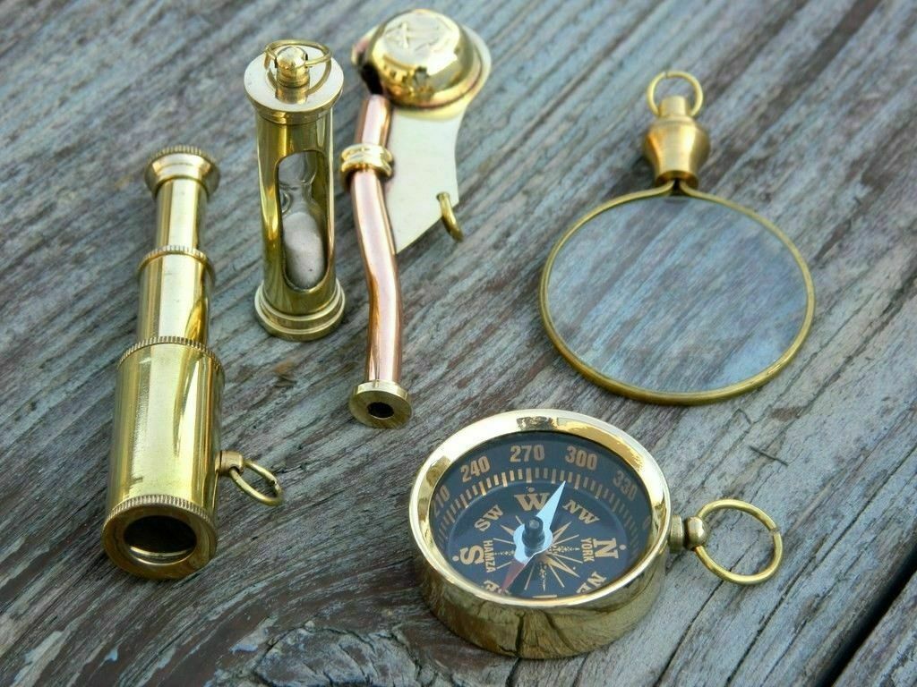 - Nautical Gift Set-Telescope,Compass,Magnifier,Bosun Whistle,Sand Timer Handmade