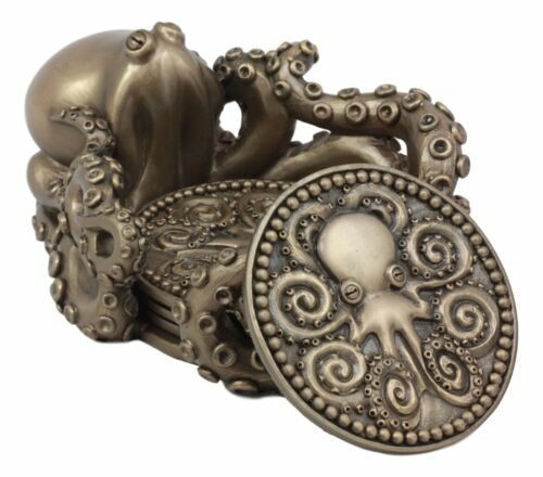 Ebros Nautical Kraken Octopus Coaster Holder Figurine With 4 Cthulhu Coasters