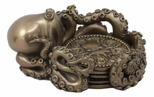 ? This Kraken Octopus Coaster Holder with 4 Coasters is made of high quality polyresin, individually hand crafted and painted. Color tone may vary from picture.