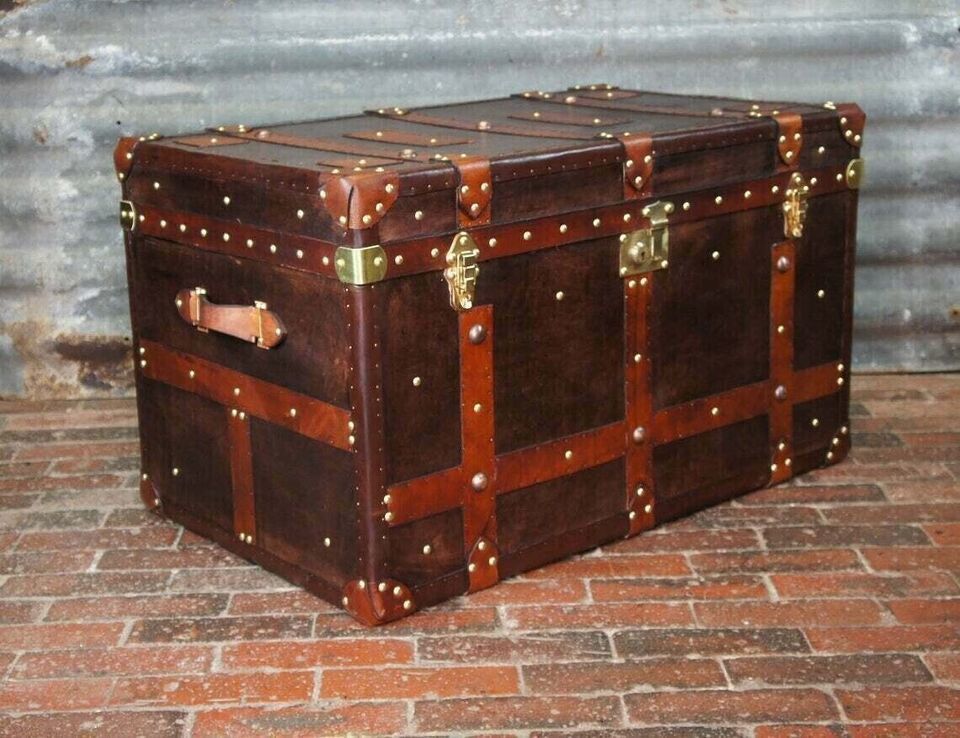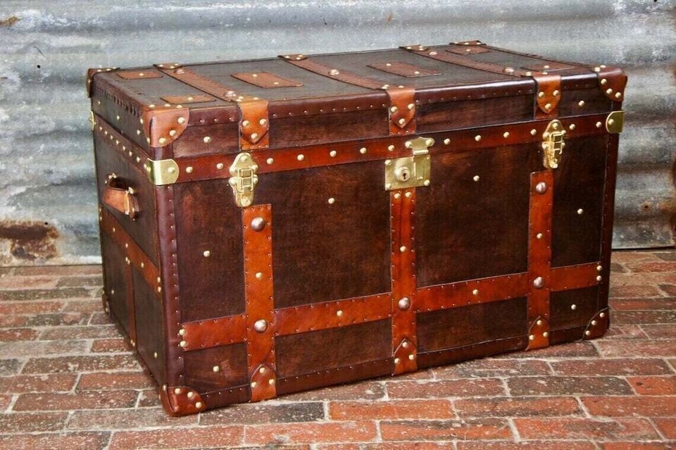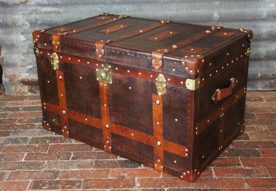 A large single occasional side table trunk in antique inspired leather