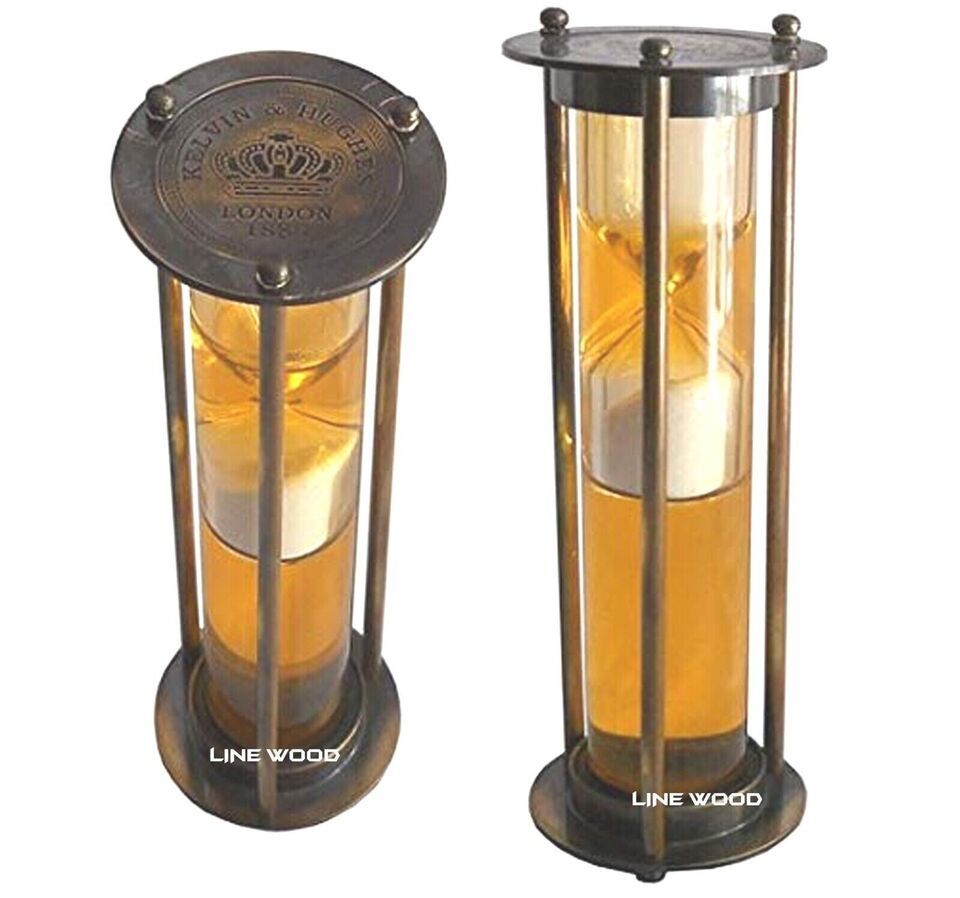 Nautical Maritime Brass Nickel Finish Sand Timer Desk Decor Liquid Hourglass 7"