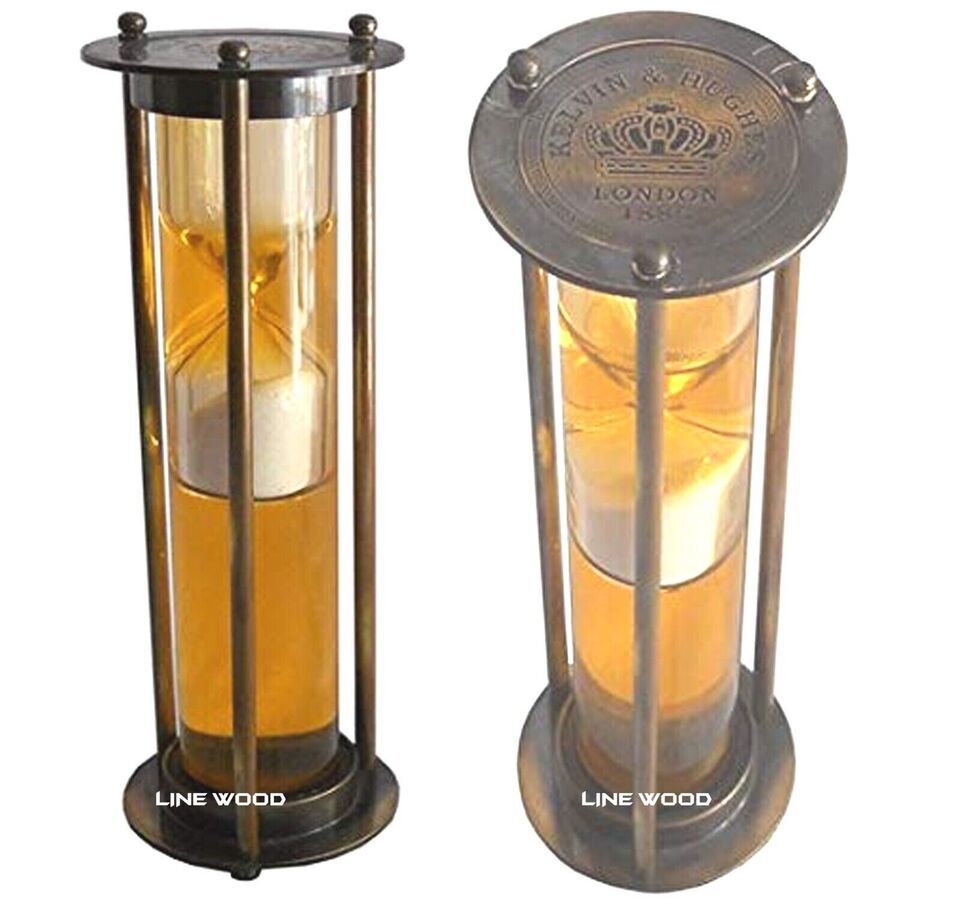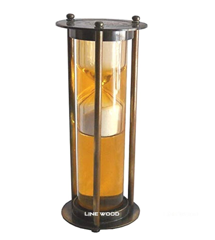 - Nautical Maritime Brass Nickel Finish Sand Timer Desk Decor Liquid Hourglass 7"