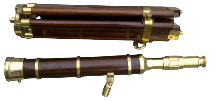 he Astro Telescope is a great addition to any nautical enthusiast collection. This beautiful Solid brass telescope is mounted on a wooden tripod. The objective lens is 40 mm. This telescope is a beautifully functioning nautical masterpiece that produces a magnification up to 17 x.