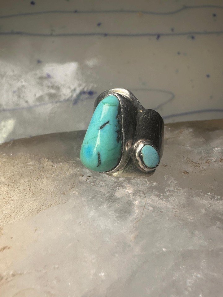 - Navajo turquoise ring size 8.25 sterling silver pinky cigar band women girls