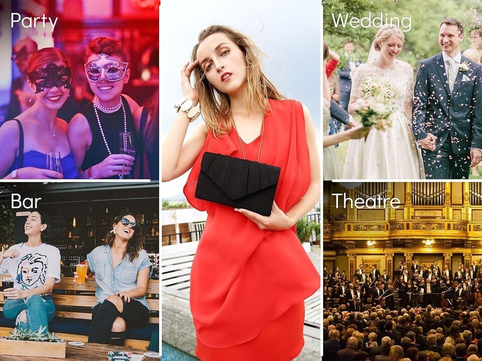With its luxurious faux suede design and effortless functionality, this clutch embodies timeless elegance that will make you feel confident and glamorous at any event. Whether you're dancing the night away at a banquet or enjoying a sophisticated dinner, this standout accessory will elevate your look to unforgettable heights.