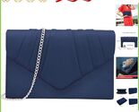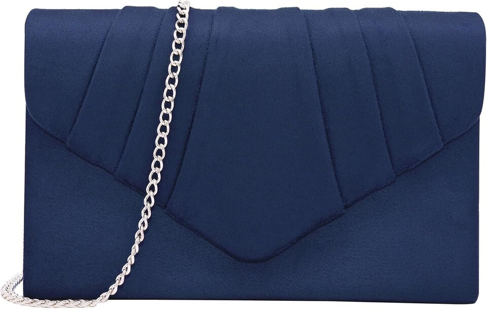 - Navy Blue Pleated Evening Clutch with Chain - Elegant Faux Suede Design