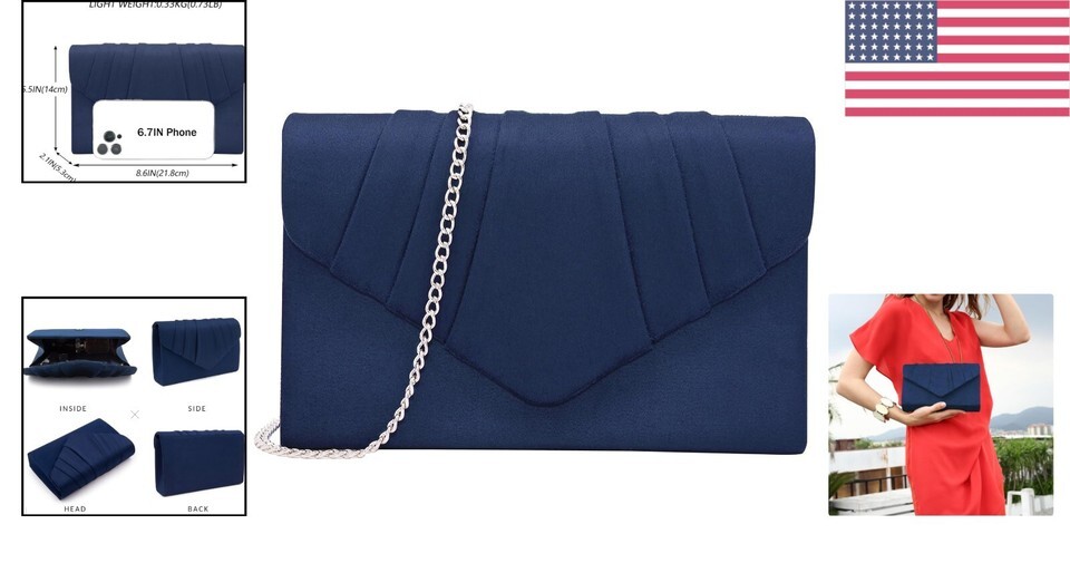 Indulge in elegance?order your Navy Blue Pleated Evening Clutch with Chain today and make a statement wherever you go!