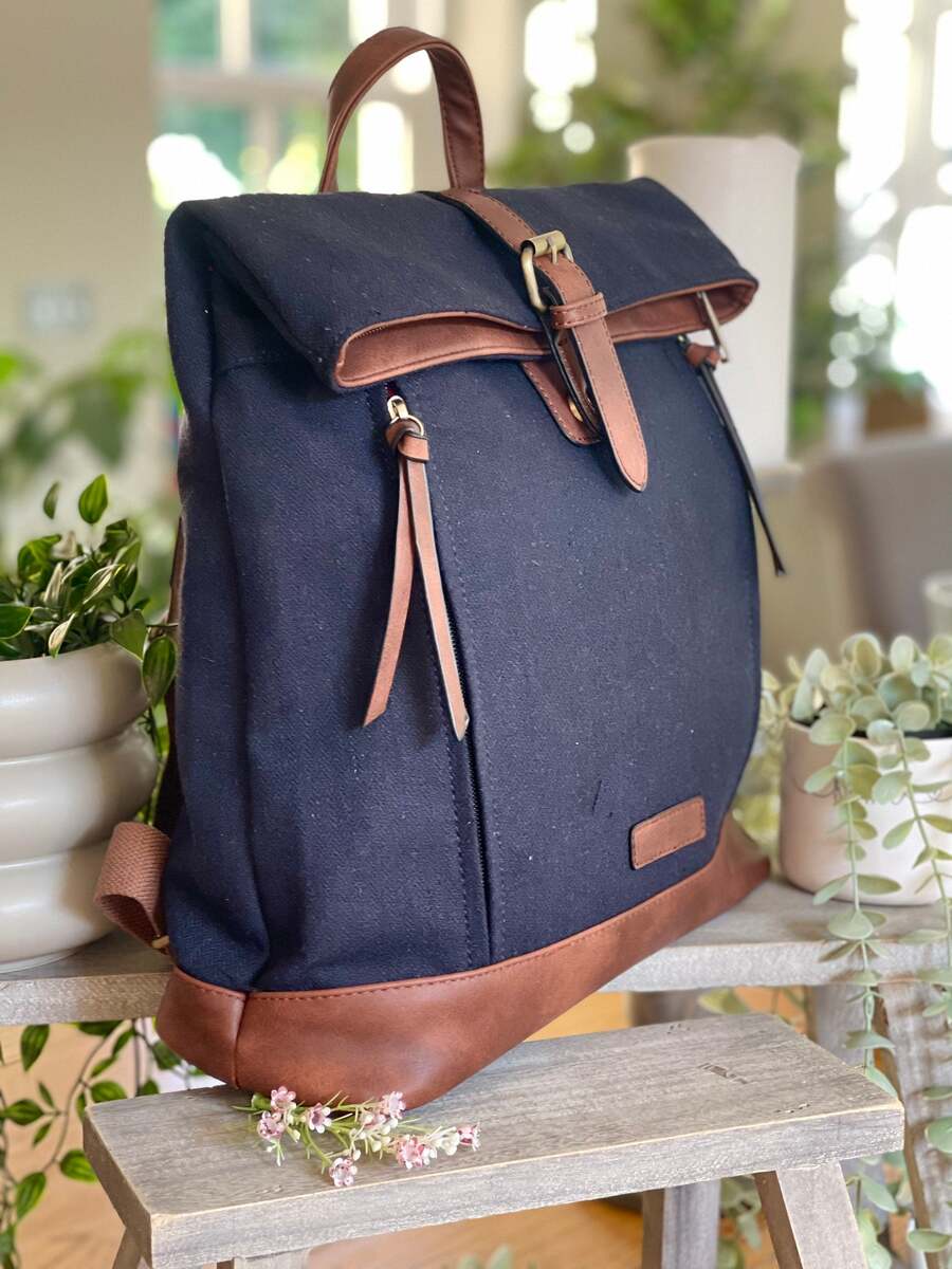 Navy Herringbone Rucksack/Backpack