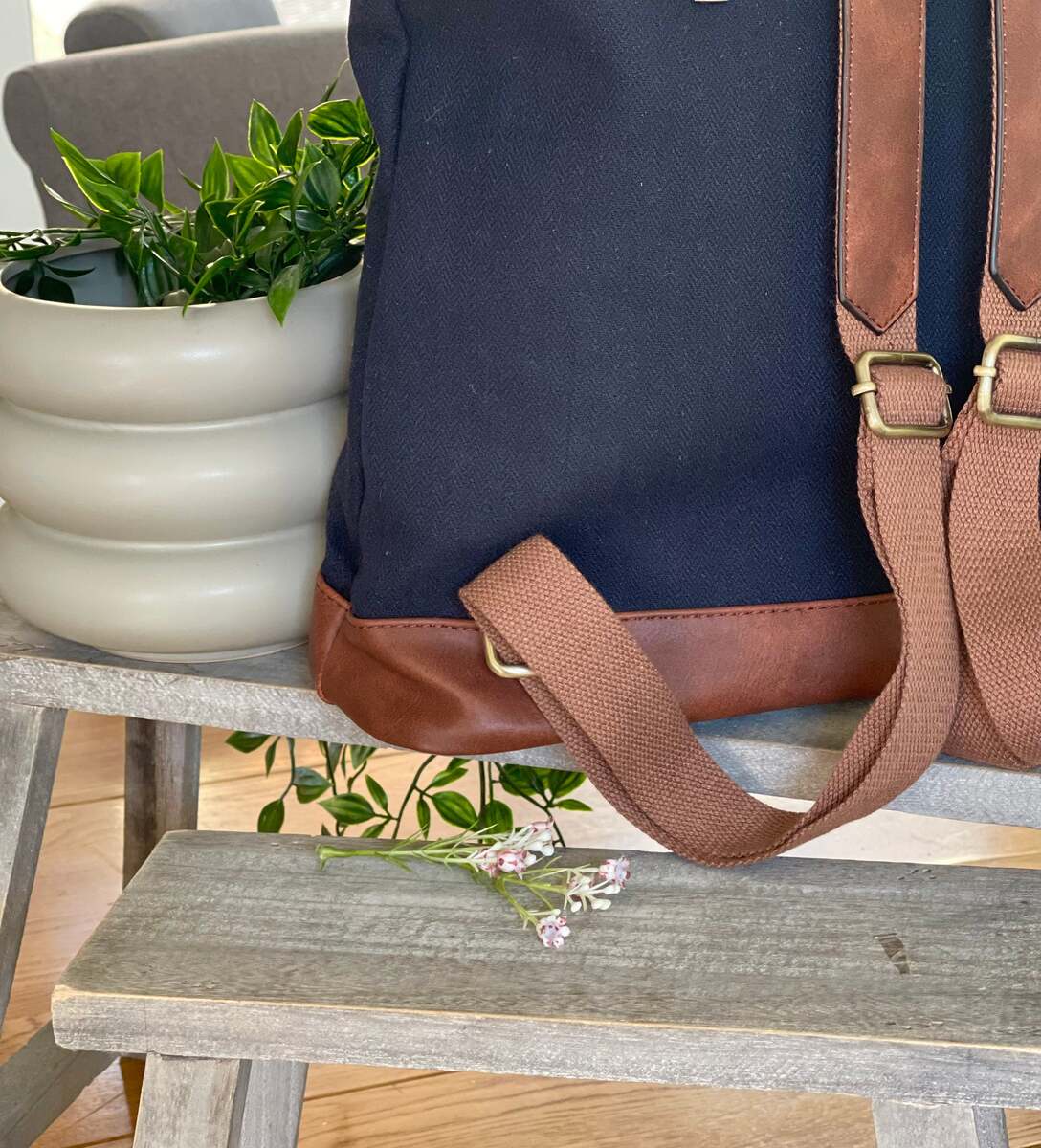 - Navy Herringbone Rucksack/Backpack