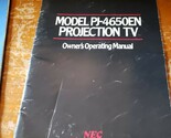 NEC PROJECTION TELEVISION Operating Manual booklet # PJ-4650EN / 465O