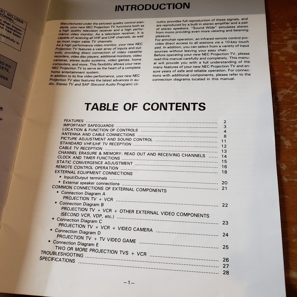 - NEC PROJECTION TELEVISION Operating Manual booklet # PJ-4650EN / 465O