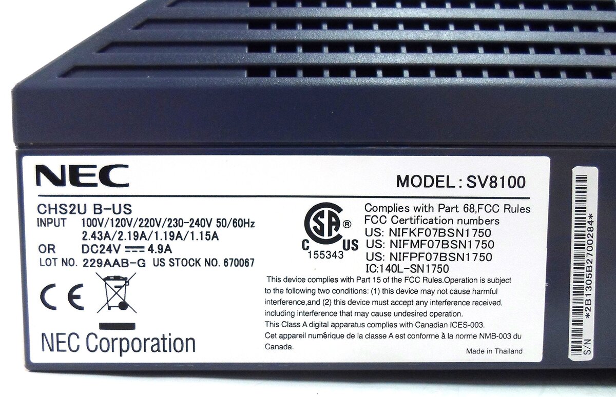 NEC UNIVERGE SV8100 CHS2U B-US 3-SLOT 9.5 CHASSIS (670067) |