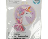 Needle Creations Unicorn 6 Inch Punch Needle Kit. Punch Needle Kit. 100 Percent Polyester Fabric, Floss, and Felt. Quick and easy. Kit Includes: 1 Fabric Panel, 7 Floss Colors, 6 Yarn Colors, 10 Felt Colors, Ribbon, 1 Plastic Embroidery Hoop, 1 Needle. For use with a 2.2 mm adjustable punch needle tool for yarn with threader. Sold separately. Kit requires a basic knowledge of punch needle. Finished Size: 6 Inch Diameter. CHK-NC-PNND-UNCRN