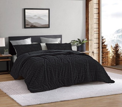 - NEIDA BLACK STRIPE BLANKET EMBOSSED SHERPA SOFTY THICK & WARM 3 PCS KING SIZE