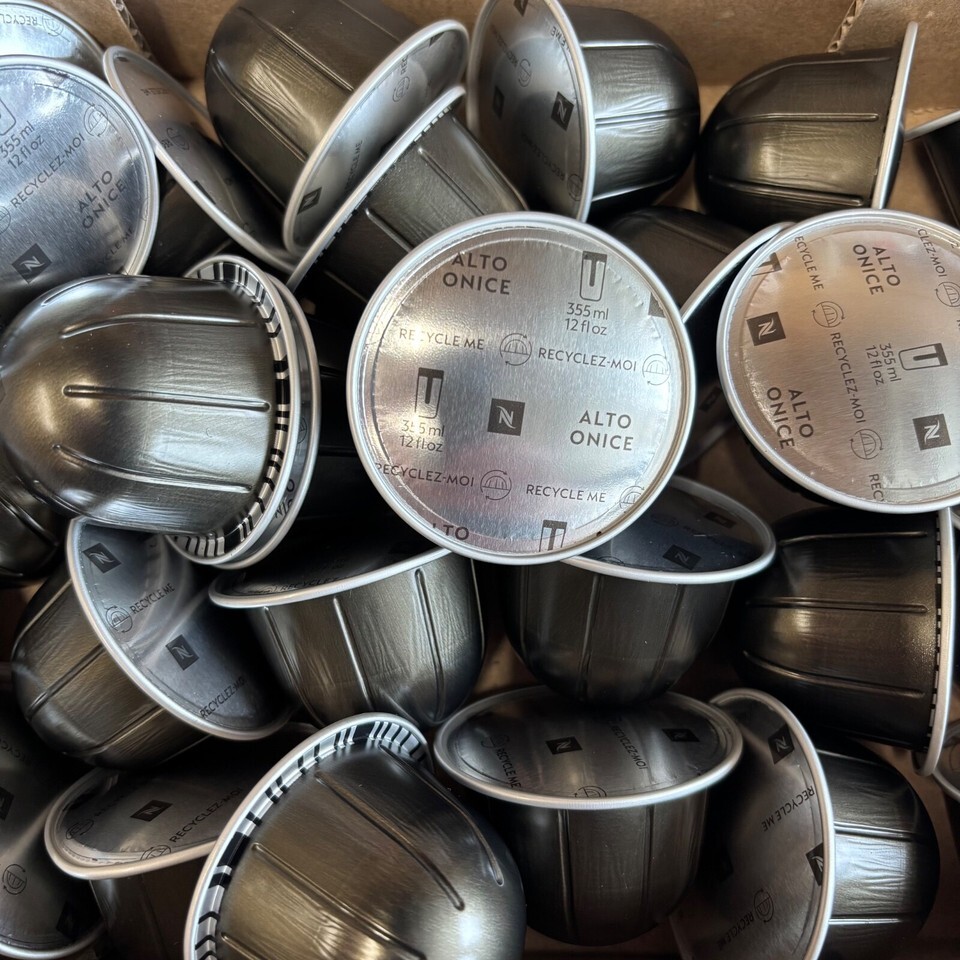Nespresso Vertuo Capsules, Alto Onice, XL Coffee Pods, 28 count, Brews 12 oz. Intensity 7 LOOSE/BULK lot We do our best to pack orders to arrive in excellent condition. Occasionally, packages may arrive with dented capsules due to handling during the shipping process. Dented capsules are fine to use as long as the round foil rim is not bent.