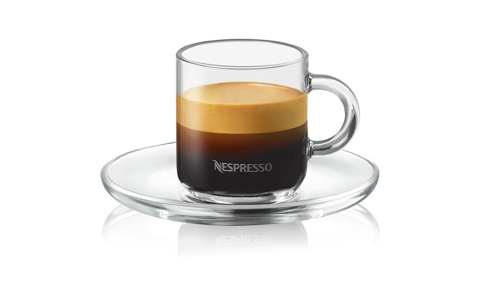 Go big even for small coffee moments with this Vertuo Espresso cup. It comes in twos, one Espresso cups (ca. 80 ml), and one saucer. Made out of tempered glass and rounded shapes, the cup will keep your espresso warm, and sit comfortably in your hand.Tempered glass is processed with special treatments to increase its strength and resistance to thermal shocks compared to normal glass. As with all glassware, please handle them with care. For an Italian coffee moment, every day.