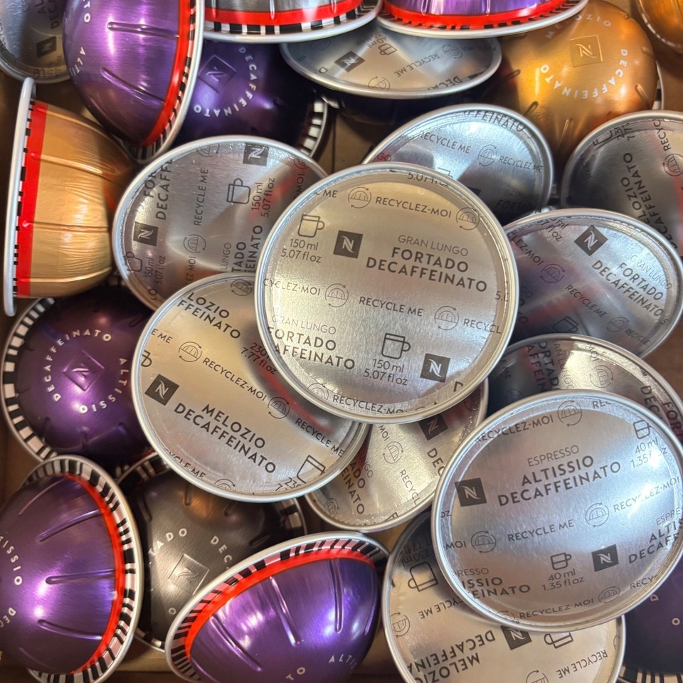 ***DECAF*** Nespresso Capsules Vertuo, 30 count DECAF Variety Pack. 10 of each of the following Decaffeinato flavors: Decaf Melozio (brews 7.8 oz) Fortado (Brews 5 oz) Altissio (Brews 1.35 oz) BULK/LOOSE LOT We do our best to pack orders to arrive in excellent condition. Occasionally, packages may arrive with dented capsules due to handling during the shipping process. Dented capsules are fine to use as long as the round foil rim is not bent.