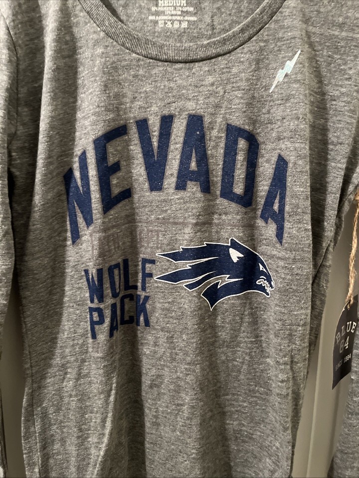 Nevada Wolf Pack Women's Juniors Long Sleeve T-Shirt Size M Blue 84 Gray new with tag.